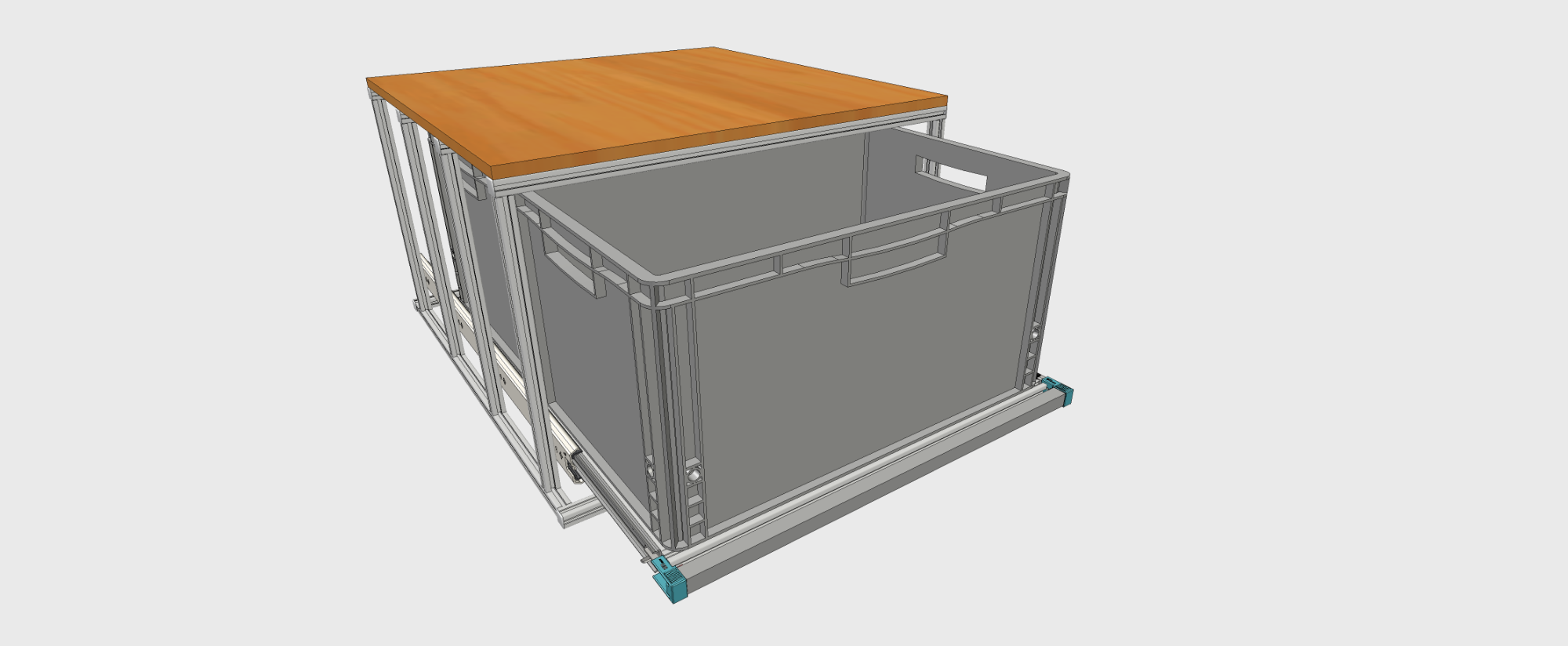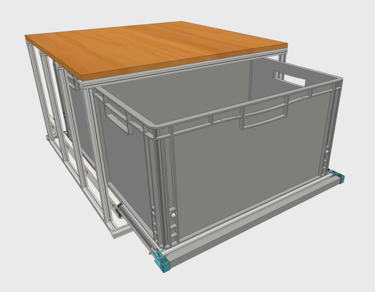 - Bei dem Auszugssystem wird der Rahmen in 20x20 mm Systemprofilen gefertigt.